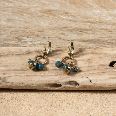 Découvrez le collier Patou, un bijou bronze aux détails vert d'eau, idéal pour un look raffiné et discret. Sa conception délicate et son choix de couleurs en font l'accessoire parfait pour compléter une tenue sophistiquée. Parfait pour toutes les occasions, ce collier ajoute une touche subtile de couleur et d'élégance à votre style quotidien.
