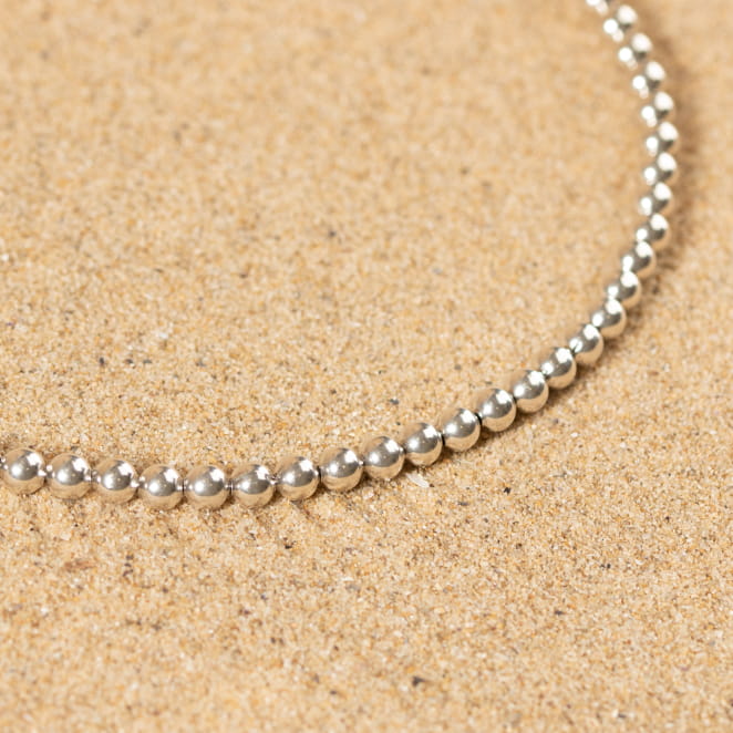 Élégant et raffiné, le collier Puce s'accorde parfaitement avec la plupart de vos bijoux et de vos tenues. Ses jolies perles argenté, tendances et minimalistes, sont idéales pour vous accompagner au quotidien ! Délicat, il peut se porter seul ou avec d'autres bracelets.