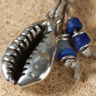 - d'un pendentif en métal plaqué argent 999 en forme de cauri,