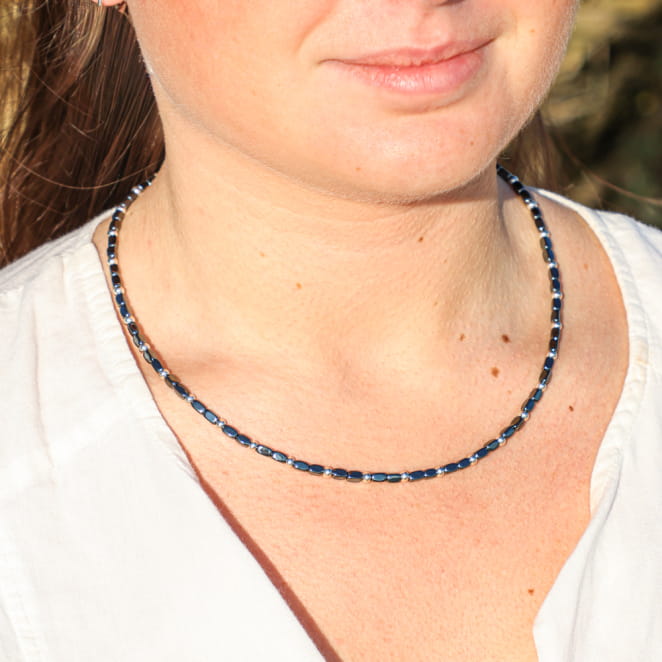 Craquez pour notre coliier en perles pour femme Seraphine aux perles argentées et hématite grises, rehaussé d’une chaînette de réglage pour un ajustement parfait. Ce collier en perles allie simplicité et modernité naturelle, idéal pour accompagner vos instants de douceur au rythme des vagues.