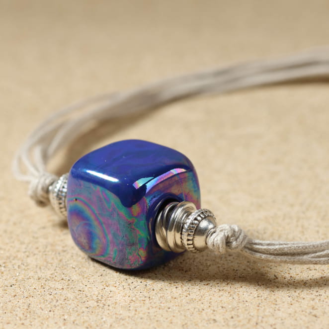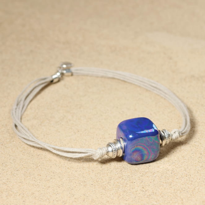 - une perle en céramique bleue,