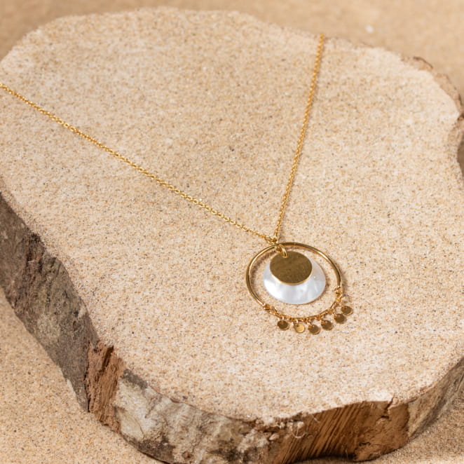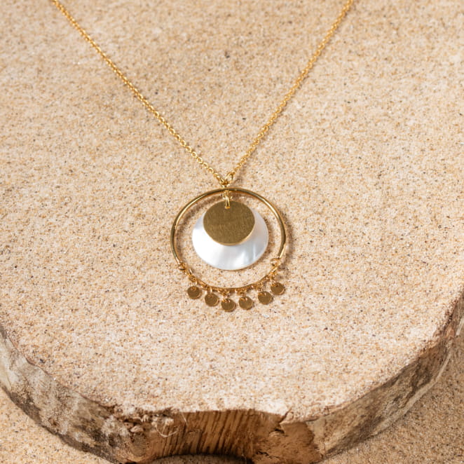 Optez pour un style bohème avec le collier doré Tzigane. Composé d'une chaîne fine dorée et d'une perle ronde en nacre blanche, il apporte une touche de délicatesse et d'élégance à votre look. Idéal pour toutes les occasions, ce collier est l'accessoire parfait pour sublimer votre style avec une touche bohème chic.