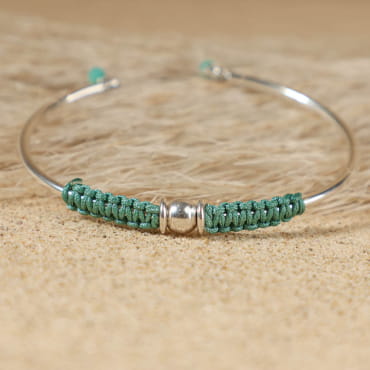 - d'une petite perle en verre vert au niveau de l'attache,