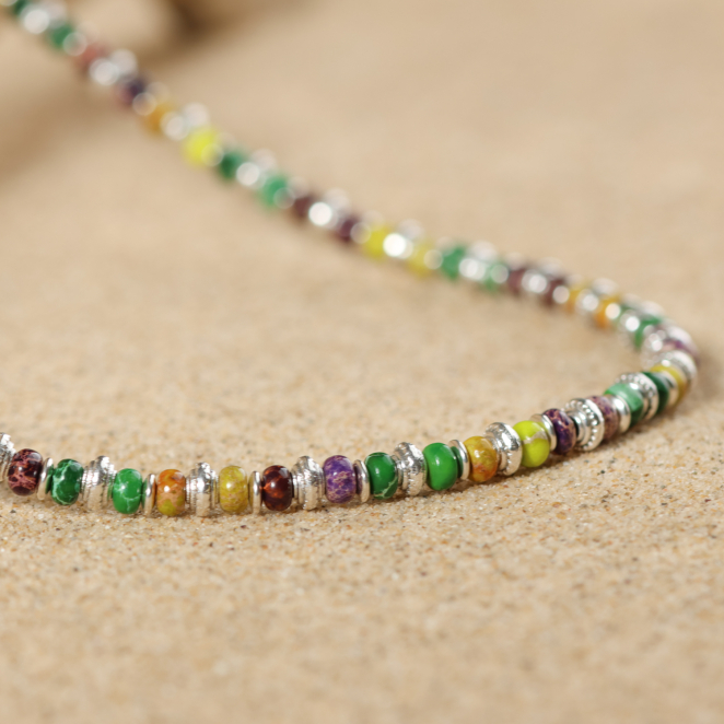 Ajoutez une touche de gaieté à votre look avec le collier Yaëlle. Ce collier, fait à la main, capture l’esprit des vacances et du littoral avec ses nuances vives et éclatantes. Chaque perle raconte une histoire de couleurs, évoquant les reflets changeants des vagues sous le soleil. Léger et pétillant, il sera illuminer vos journées et sublimer vos tenues d’une note bohème et raffinée. Parfait pour celles qui aiment se distinguer avec élégance et originalité.