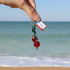 Découvrez le porte-clés Amarelle, un accessoire en forme de cerises, alliant le rouge vif et le métal argenté. Avec ses perles en verre rouge et son pendentif cerise, ce porte-clés apporte une touche fruitée et joyeuse à vos clés. Fabriqué en France, il est idéal pour ceux qui aiment les détails colorés et l’esprit fait main.