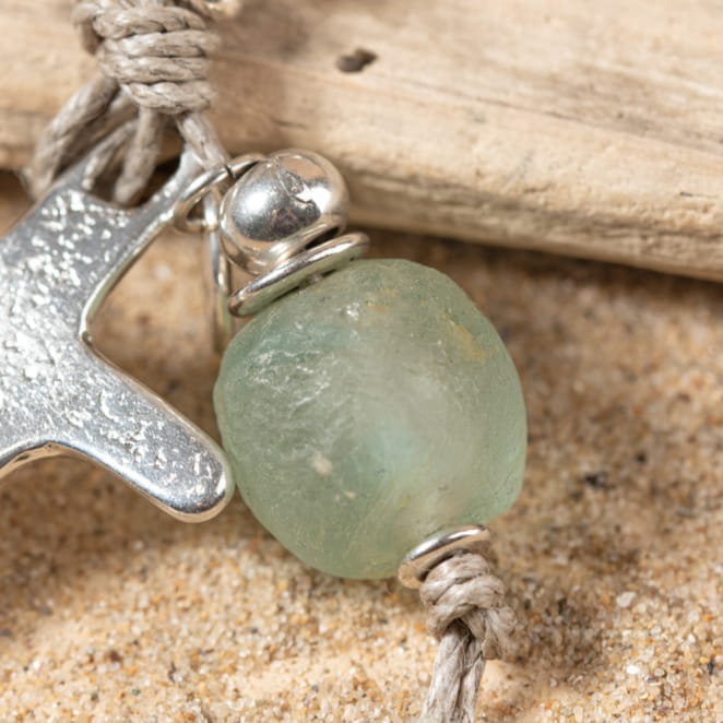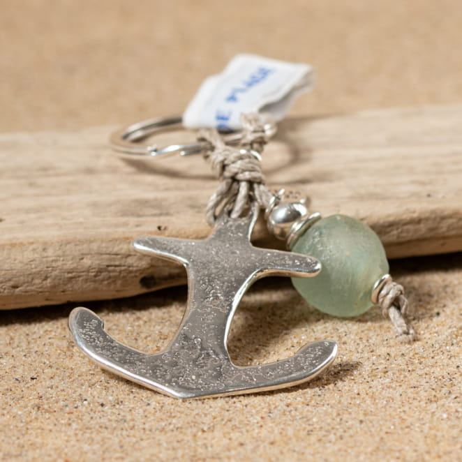 Découvrez le porte-clés Ancre, un symbole de l'esprit marin à emporter partout avec vous. Son pendentif en forme d'ancre argenté, associé à une perle en verre verte et un cordon en lin, évoque la liberté et l'aventure en mer. Parfait pour les amoureux de l'océan, cet accessoire ajoute une touche de style nautique à votre trousseau.