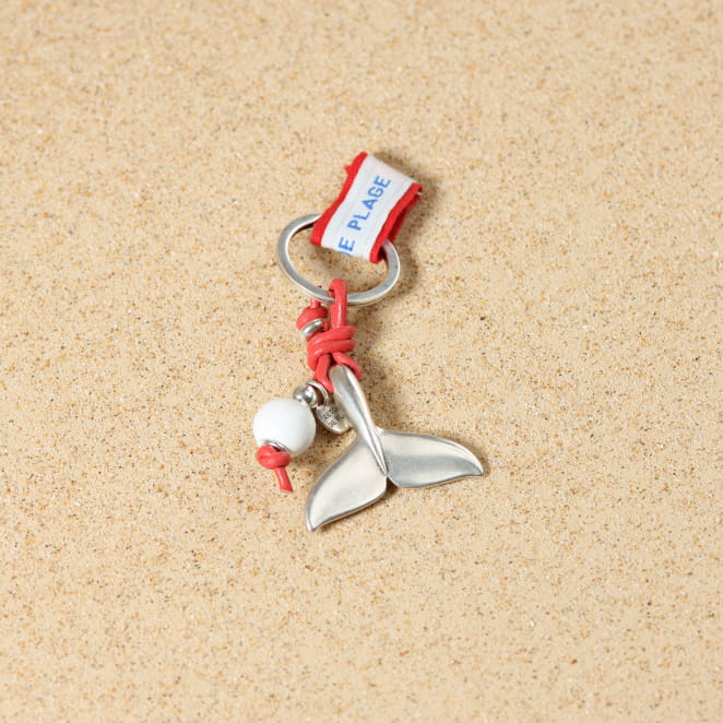 Gardez vos souvenirs de vacances à la mer toujours sur vous avec le porte-clefs Arcachon rouge et blanc ! Son pendentif en métal argenté en forme de queue de baleine vous aide à regrouper vos clés.
