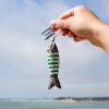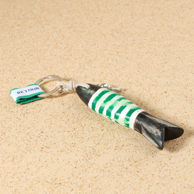 Craquez pour le porte-clefs Colin. Un petit poisson en bois rayé de couleurs, suspendu à des cordons en lin naturel. Une perle argentée vient ponctuer l’ensemble. Pour emporter un air de bord de mer partout avec vous.
