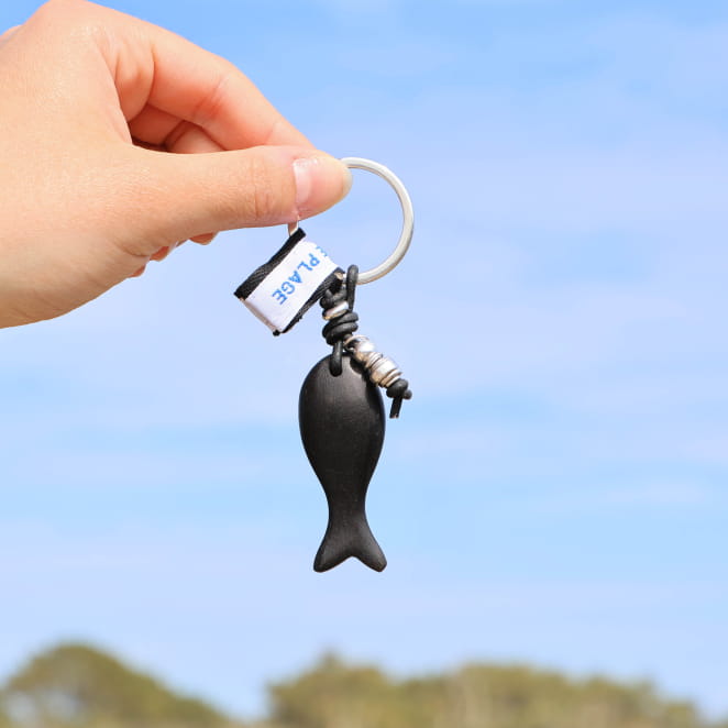Retrouvez le porte-clés Filou, un accessoire artisanal qui marie le noir élégant et le métal argenté. Avec son pendentif poisson en bois noir et son ruban serge en coton, ce porte-clés apporte une touche d’originalité et de naturel à vos clés. Fabriqué en France, il est parfait pour ceux qui aiment les détails authentiques et l’esprit fait main.