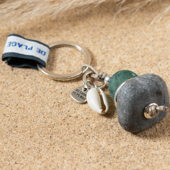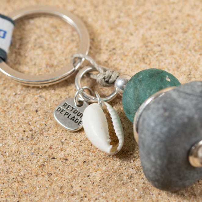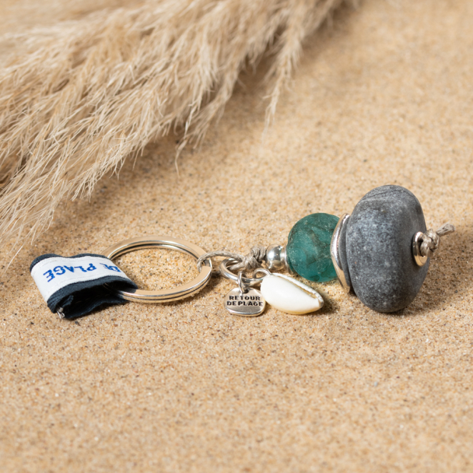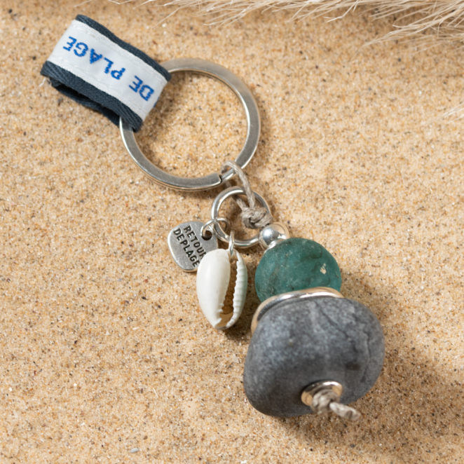 Idéal pour retrouver vos clefs au fond du sac, ce porte-clefs en forme d'Iceberg sera parfait sur votre trousseau. Son petit galet, son verre recyclé et son coquillage accompagnera vos clefs au quotidien tout en vous rappelant des souvenirs de vos dernières vacances en bord de mer.
