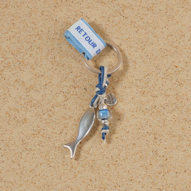 Craquez pour notre porte-clefs Lac et laissez vous transporter en bord de mer à chaque fois que vous prendrez votre trousseau. Avec son délicat petit poisson argenté, ce porte-clefs aux nuances de bleu vous rappelle des souvenirs de vacances sur la côte Ouest !