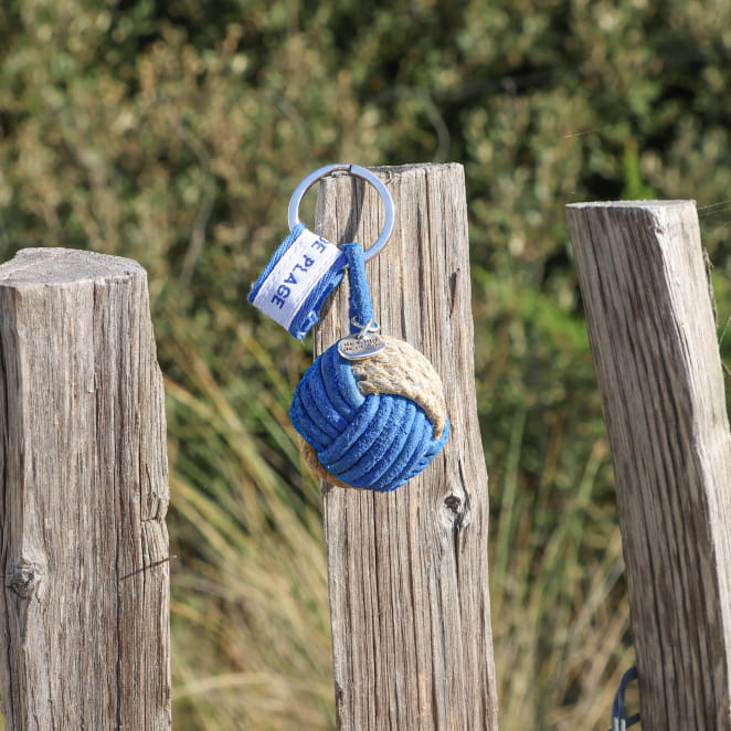 Adoptez un style marin avec le porte-clés Luz, composé d'une élégante touline en cuir bleu. Ce porte-clés allie robustesse et esthétique nautique, parfait pour ajouter une touche d'aventure à votre quotidien. Pratique et stylé, il s'accorde idéalement avec un look décontracté ou pour apporter une note maritime à vos accessoires.