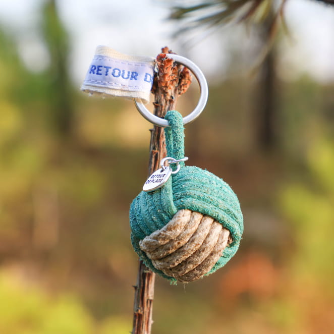 Adoptez un style marin avec le porte-clés Luz, composé d'une élégante touline bleu turquoise et beige. voir plus