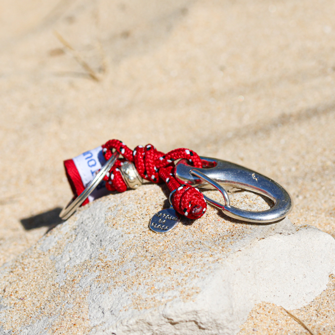 Éveillez le marin qui est en vous avec ce porte clés Mousqueton. Son cordon rouge vous rappelle le cordage d'un bateau. Un porte clés pratique pour ne pas perdre vos clés et les accrocher où vous le souhaitez grâce à son mousqueton.