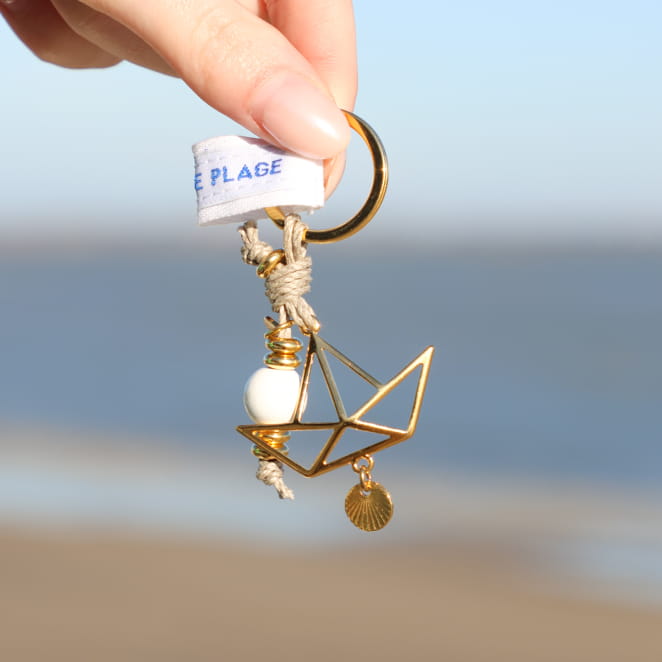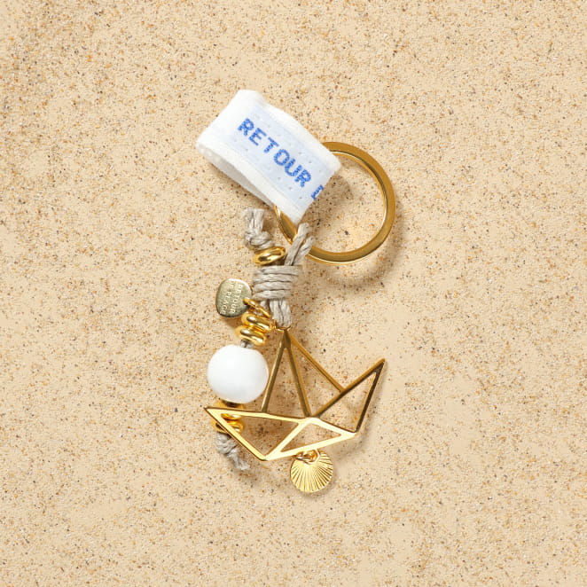 Évadez-vous à bord d'un bateau sur l'océan avec ce jolie porte-clefs Navire. Cet accessoire chic et élégant est un vrai indispensable pour ne plus perdre vos clés avec son pendentif en forme de bateau doré et sa perle en bois blanc