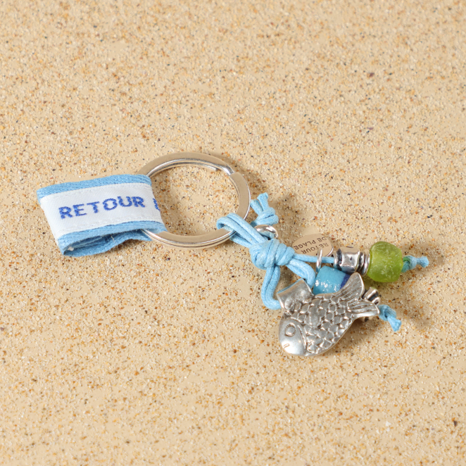 Découvrez le porte-clés Novo, un accessoire ludique et coloré. Il se compose d'un pendentif poisson argenté, d'un cordon bleu ciel résistant et de perles multicolores vives. Parfait pour ajouter une touche de fantaisie à vos clés ou sacs, c'est l'accessoire idéal pour ceux qui recherchent à la fois style et fonctionnalité.