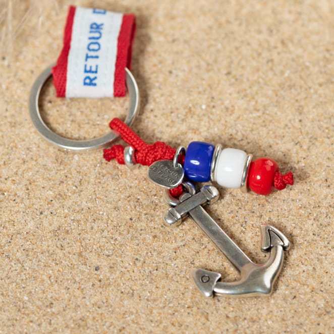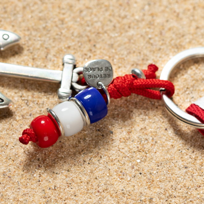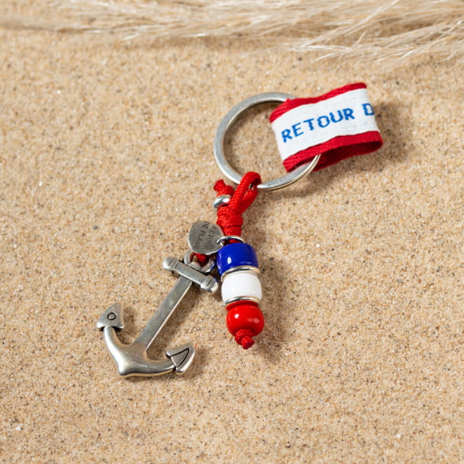 Découvrez dès maintenant le porte-clés Olympe, une ode à l'élégance française avec ses couleurs bleu, blanc, rouge et son pendentif ancre argenté. voir plus