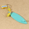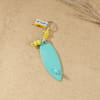 - d'un pendentif en forme de planche de surf en polymère bio sourcé* bleu.
