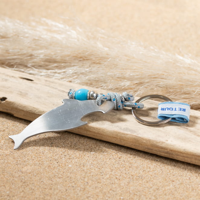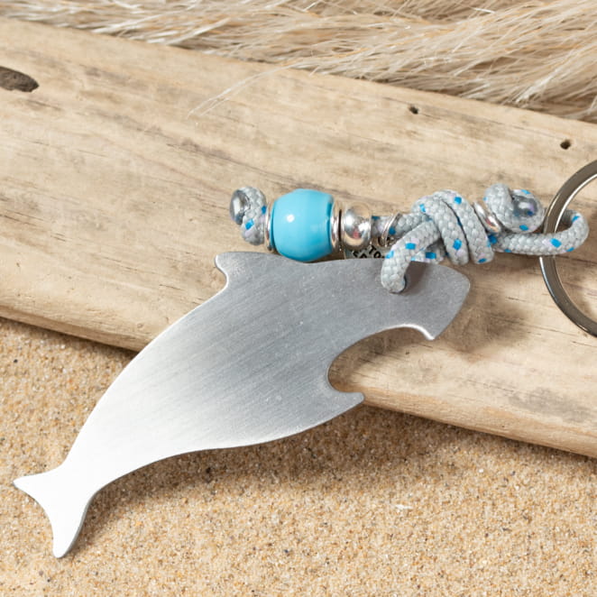 Fusion de fonctionnalité et de style, le porte-clefs Squale est un incontournable. Son pendentif requin argenté décapsuleur, alliant utilité et originalité. Agrémenté d'une perle bleu ciel et de perles argentées, il offre une esthétique marine captivante.