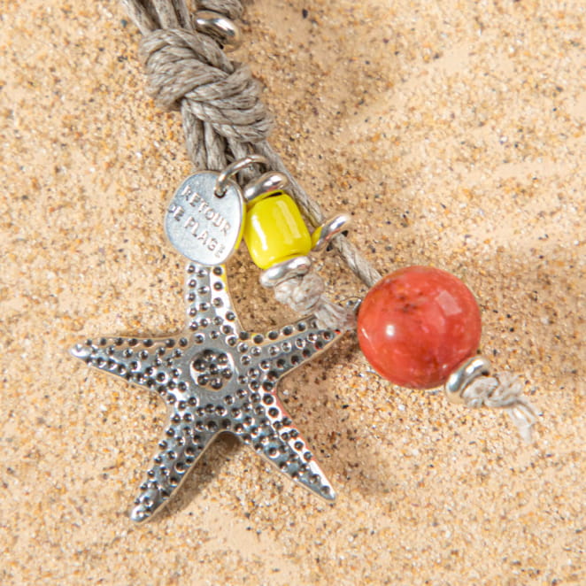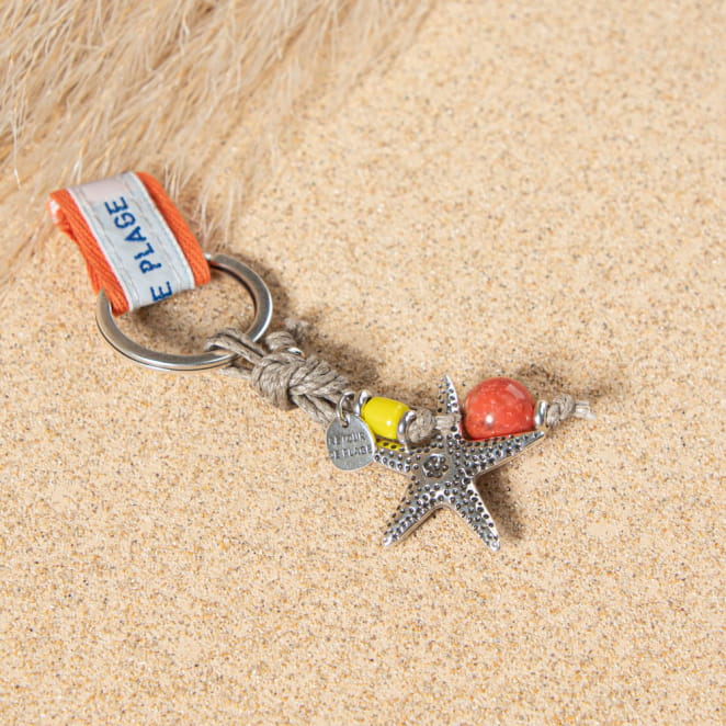 Emportez un bout de vos vacances avec le porte-clefs Tida : Ce porte-clés multicolore est une véritable invitation au voyage, mêlant le charme d'une étoile de mer argentée et la gaieté de perles aux tons orange, rappelant les couchers de soleil estivaux. voir plus