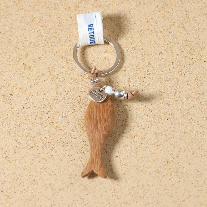 Découvrez le porte-clés Tilapia, une délicate touche de nature à emporter partout avec vous ! Sculpté en bois et orné d'un cordon en cuir marron ainsi que d'une perle en bois blanc, ce porte-clés en forme de poisson ajoute une note charmante à vos clés. Alliant artisanat et esthétique, il est à la fois pratique et élégant.