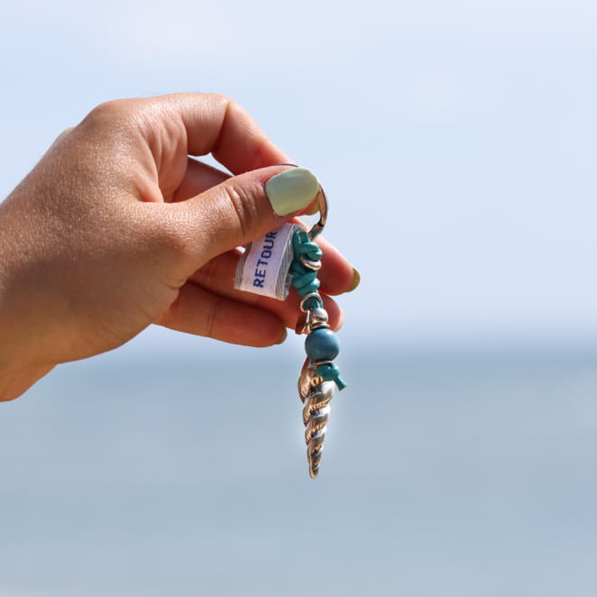 Cet élégant porte-clefs Tourelle accompagne vos clés partout. Avec son joli pendentif en forme de coquillage argenté, ce porte-clefs vous rappelle des souvenirs de balade en bord de mer. L'accessoire idéal pour ne plus perdre vos clés !