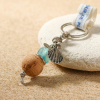 Monté sur un cordon de lin, ce porte-clé artisanal Vendredi bleu associe une perle translucide bleue en verre recyclé et une boule en liège naturel. voir plus