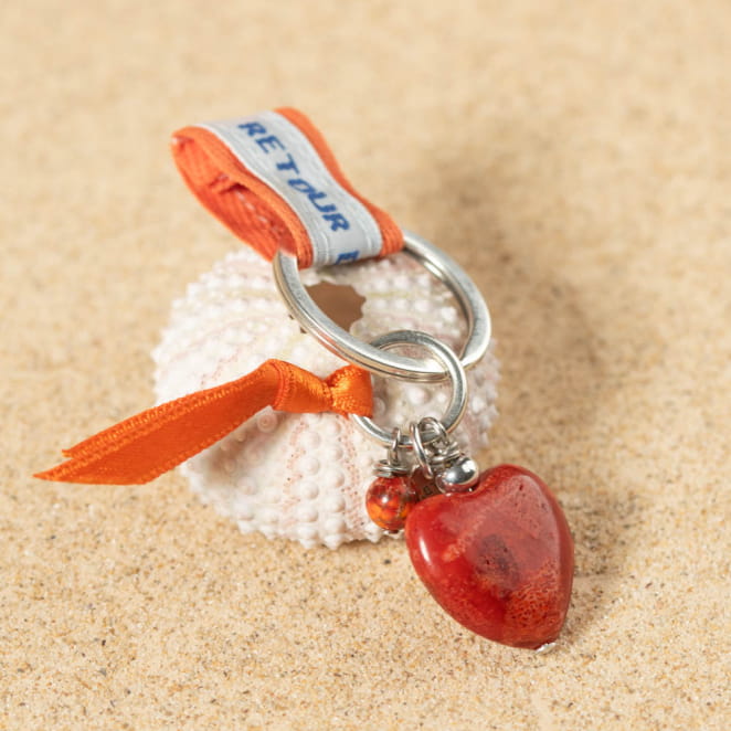 Sublimez votre trousseau avec ce porte-clés argenté Yolenn, agrémenté d'un cœur orange vibrant, d'une perle délicate et d'un ruban en satin assorti. voir plus