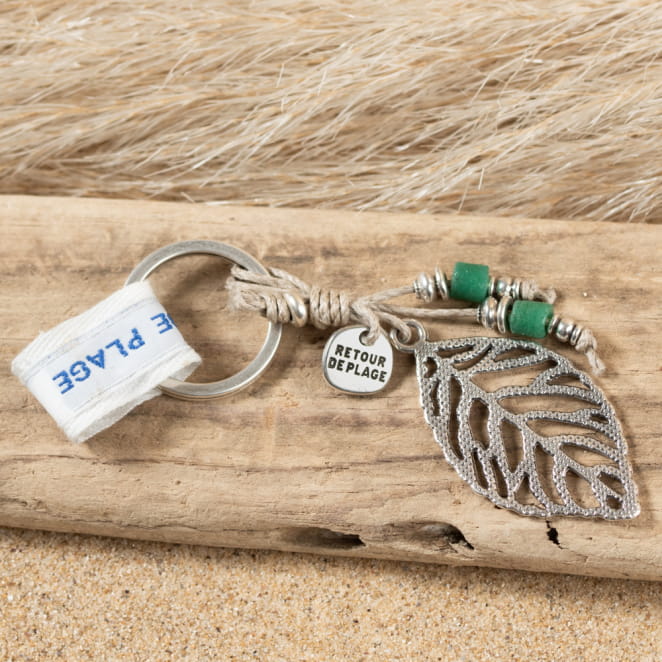 Découvrez le porte-clés Yuna, une touche de nature à emporter avec vous. Arborant un pendentif feuille argenté et des perles vertes, ce bijou élégant est monté sur un cordon en lin, évoquant la fraîcheur des sous-bois. Ajoutez une touche de verdure à votre quotidien et gardez vos clés à portée de main !