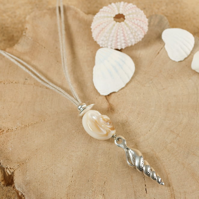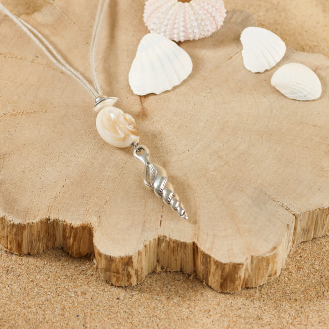 - d'un pendentif en forme de coquillage en métal plaqué argent 999,