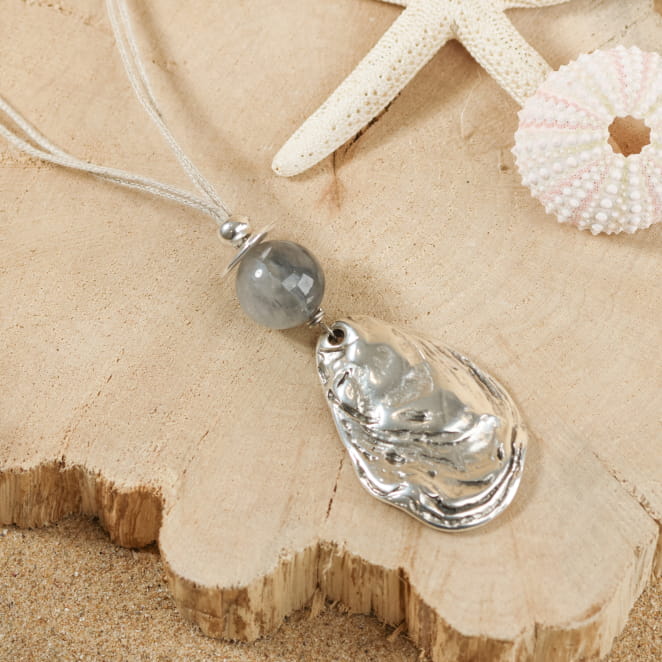 - d’un pendentif en forme d’huître en métal plaqué argent 999,