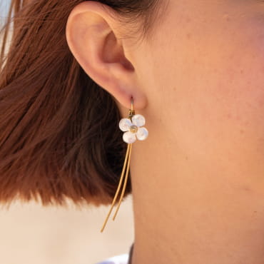 - perle en nacre blanche en forme de fleur,
