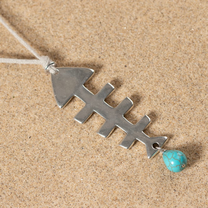 - d'un pendentif en forme d'arête de poisson en métal plaqué argent 999,