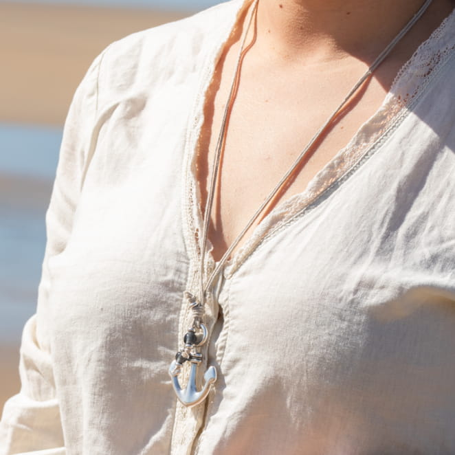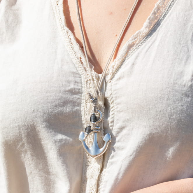 Ce sautoir est réglable grâce à un noeud coulissant : vous pouvez l'ajuster pour faire tomber l'ancre où vous le souhaitez.