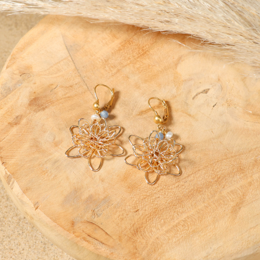 - d'une perle en forme de coeur en lapis-lazuli bleu,